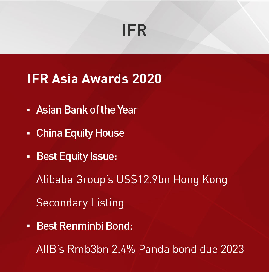 IFR Asia commented in its report that China International Capital Corp added to its reputation as China’s premier investment bank in 2020, playing a key part in introducing new capital raising concepts to the domestic market and narrowing the gap between onshore and offshore markets.