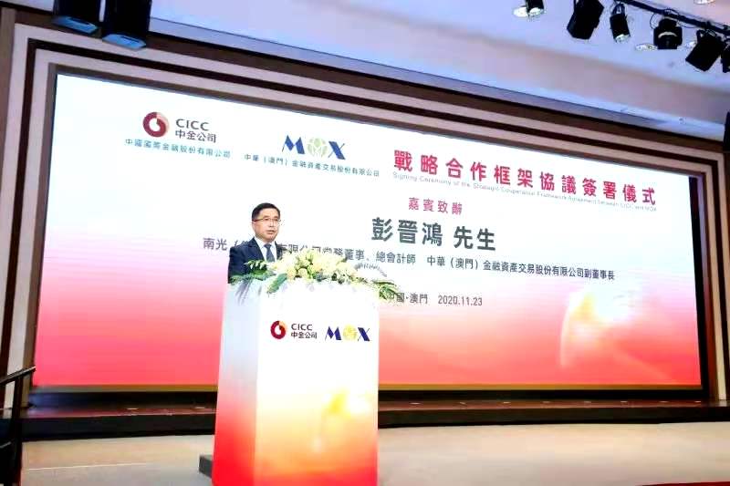 Mr. Peng Jinhong, Chief Accountant of Nam Kwong and Vice Chairman of MOX, said in his speech: “As an emerging local financial institution, it was a great pleasure of MOX to work with CICC under the background of the BRI, renminbi internationalization and the development of the Guangdong-Hong Kong-Macao Greater Bay Area, as well as the development pattern of ‘dual circulation’ where domestic and foreign markets can boost each other with the domestic market as the mainstay. The two parties can leverage their respective strengths and promote deep cooperation in bond, overseas state-owned equity transaction and other businesses, in order to contribute to Macao’s influence in the international financial market and the region’s integration into China’s bigger picture of development.”