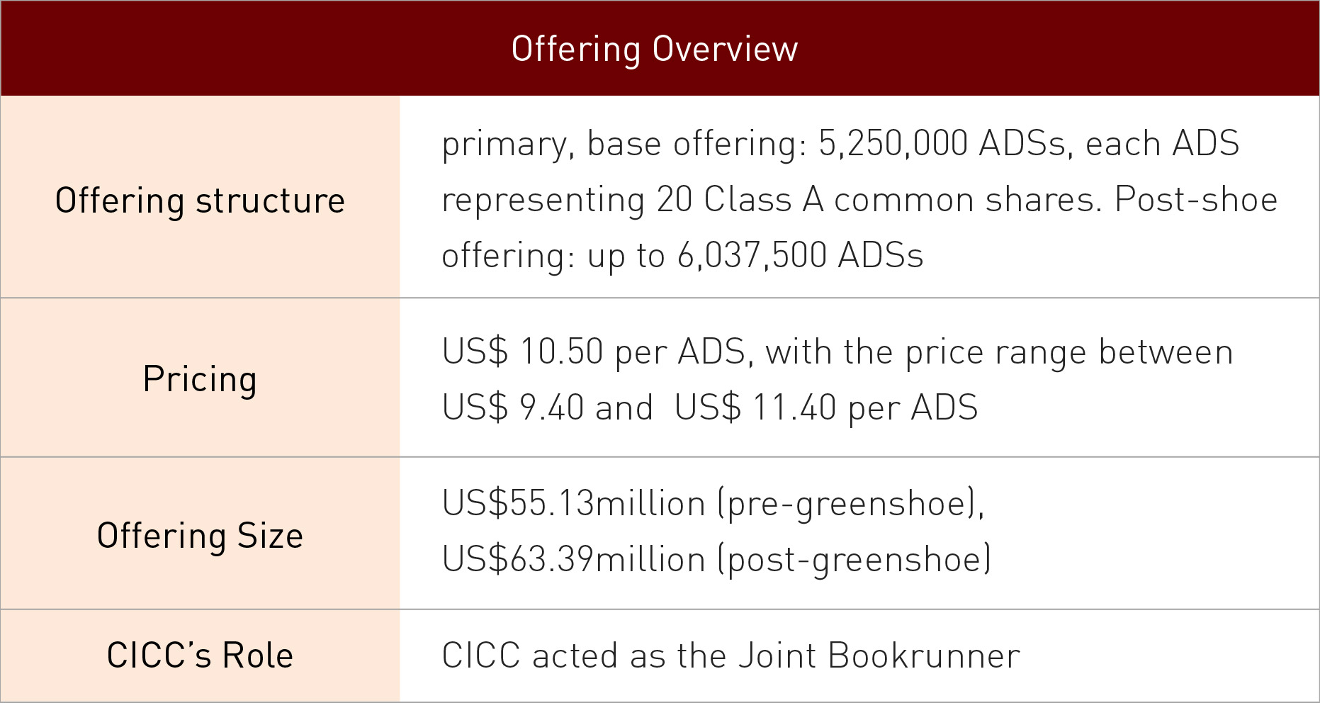 This is the first Chinese InsurTech US IPO and also the first Chinese licensed financial institution US IPO within 10 years. This deal overcame the unfavorable impact of Novel Coronavirus Pneumonia on global market, and was still welcomed and over-subscribed by high-quality global investors.